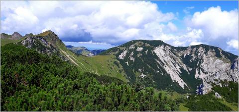 Blick vom Auerspitz auf Rotwand, Miesingsattel, Hochmiesing