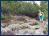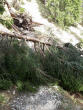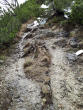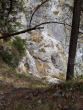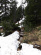 Rechts weiter wäre es auch gegangen, dann aber wäre ich nicht in den Genuß gekommen, auf einer Hängebrücke über der Faukenschlucht zu schweben, der Hackerbrücke. Mit einem Hackerangriff bei diesem schönen Wetter rechnete ich nicht. Wenig später erreiche ich die Tannenhütte. Sie von fernen zu sehen, reicht mir. Urig ist anders. Es kommt noch schlimmer. Rechts geht es auf einem Pfad weiter, heißt es in der Beschreibung hinüber zum G-Bauern. Ich aber laufe über einen breiten, braunen, bazigen Weg, von schwerem Gerät geschundener Waldboden. Vielleicht waren die durch hohe Schneelast geknickten Bäume ein guter Grund, hier eine Schneise für spätere Abholzungen zu schlagen.